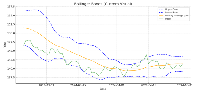 볼린저 밴드는 가격의 변동성을 시각적으로 표현하는 기술적 지표다.